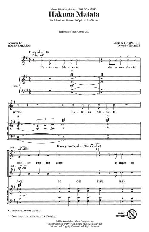 Hakuna Matata 2 Part Elton John