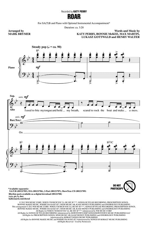Roar Pop Choral Series Satb Katy Perry