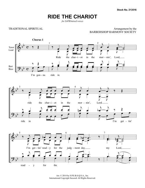 Ride The Chariot Satb A Cappella Arranger Barbershop Harmony Soc