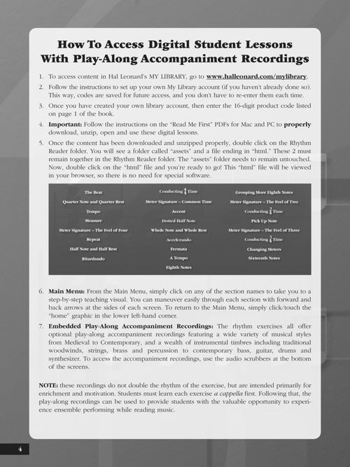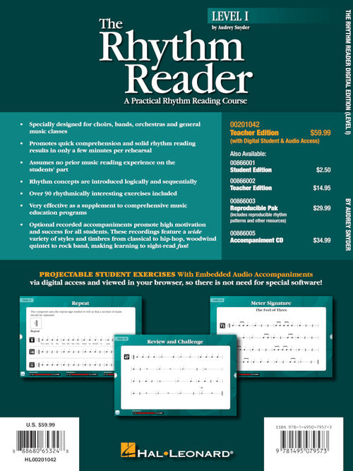 Rhythm Reader Digital Edition (Level I) Enhanced Teacher Instruction and Projectable Student Exercises with Audio Softcover Audio Online TEACHER BOOK WITH DOWNLD CODE The Rhythm Reader Level I is now available in one format! The enhanced...Regular price $71.99 -