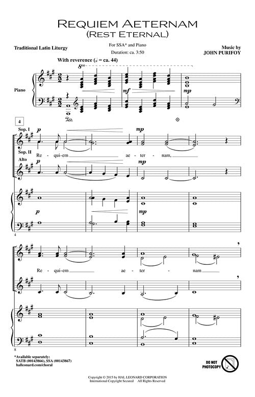 Requiem Aeternam Rest Eternal Choral Ssa John Purifoy