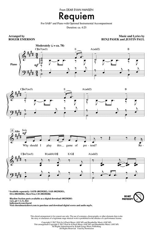 This Title Comes In Quantities Of Five (5) Copies(1 Order=5 Copies) Requiem from Dear Evan Hansen Publisher: Hal Leonard Category: Choral Series: Pop Choral Series Format: Octavo Inventory # : 00250203 UPC: 888680714192 ISBN: Width: 6.75"...Regular price $28.99 -