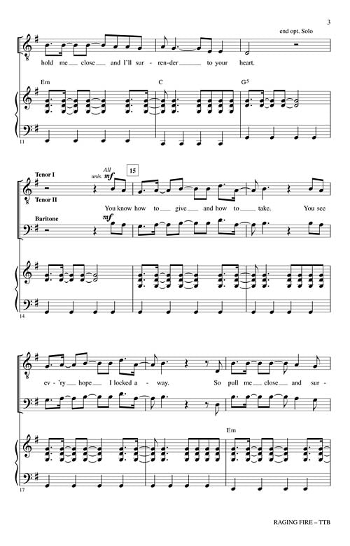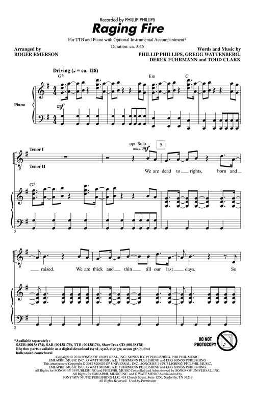 Raging Fire Pop Choral Series Ttb Phillip Phillips