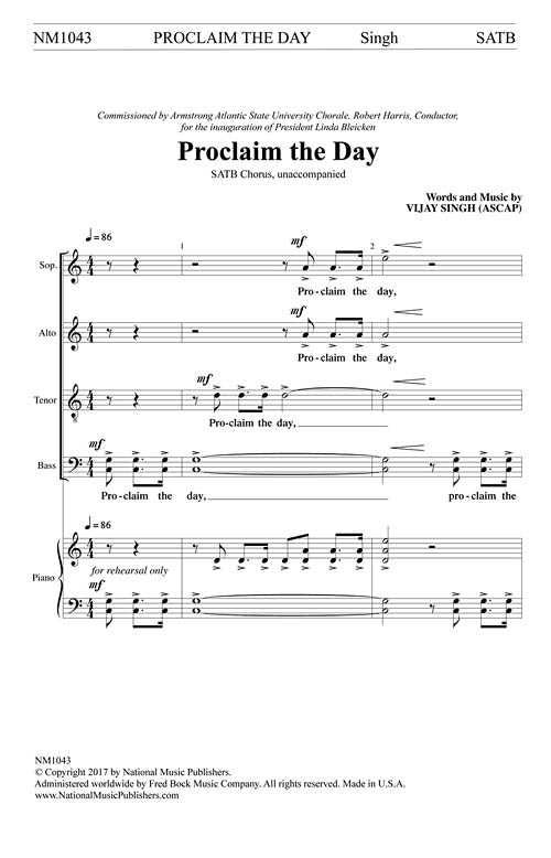 Proclaim The Day National Emerson Fred Bock Satb Vijay Singh
