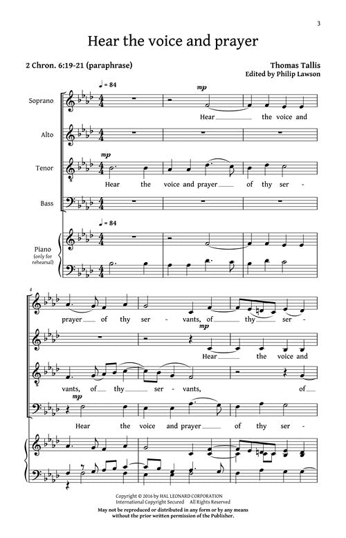 This Title Comes In Quantities Of Five (5) Copies(1 Order=5 Copies) Prayers and Partsongs Collection Octavo SATB divisi a cappella Thomas Tallis (1505-1585) was equally at ease composing simple settings of English texts, and more florid...Regular price $59.99