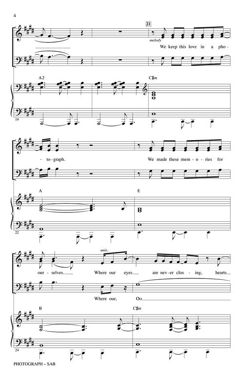 Photograph Pop Choral Series 2 Part Ed Sheeran