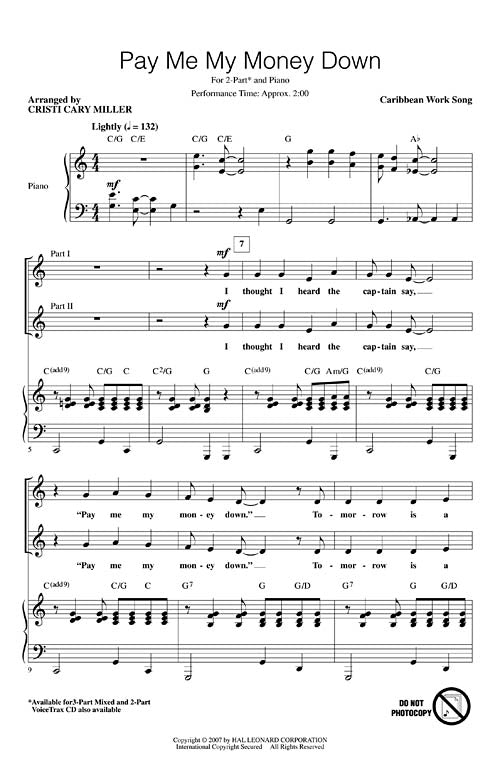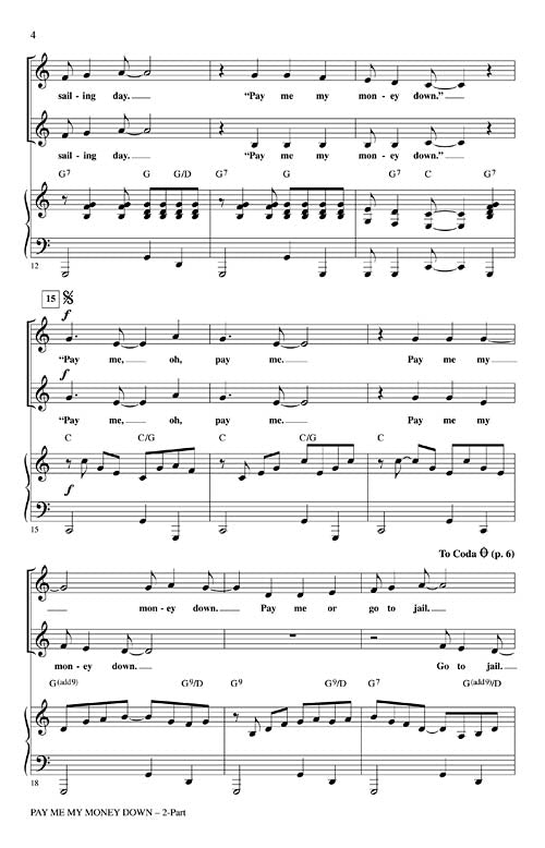 This Title Comes In Quantities Of Five (5) Copies(1 Order=5 Copies) Pay Me My Money Down 2-Part Arranger: Cristi Cary Miller Item# 08551938 Sheet MusicRegular price $20.99 -