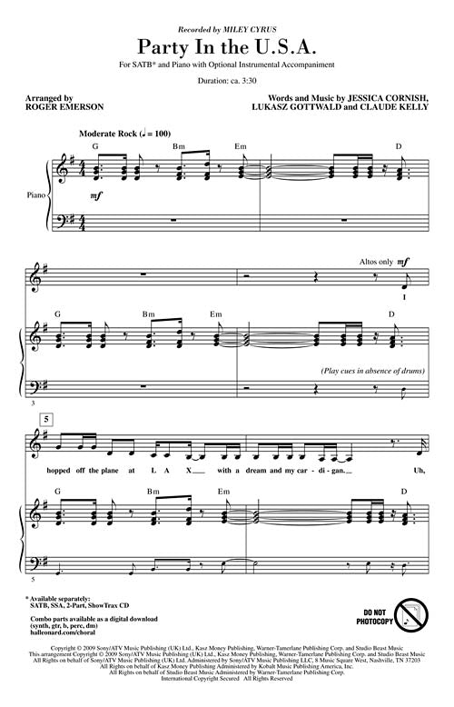Party In The U S A Satb Pop Choral Series Miley Cyrus