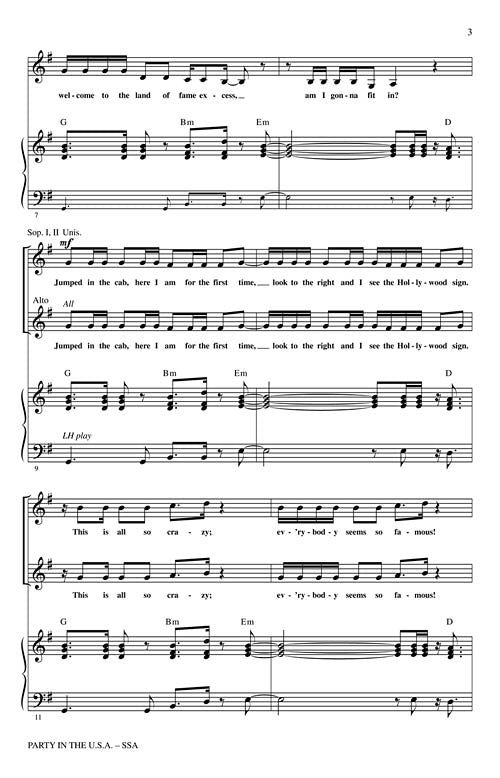 Party In The U S A Ssa Pop Choral Series Miley Cyrus