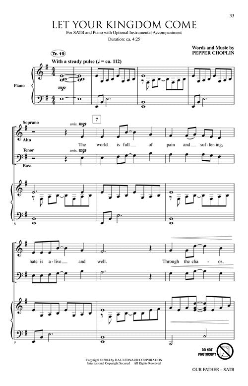 Our Father A Journey Through the Lord's Prayer Publisher: Brookfield Press Category: Choral Series: Brookfield Choral Series Format: CD-ROM It is rare to find a major non-seasonal cantata with such power and meaning. The Lord's Prayer...Regular price $419.99 -