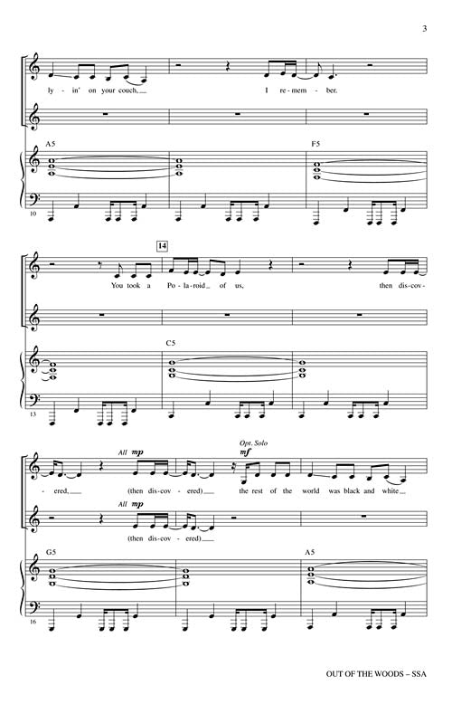Out Of The Woods Pop Choral Series Ssa Jack Antonoff
