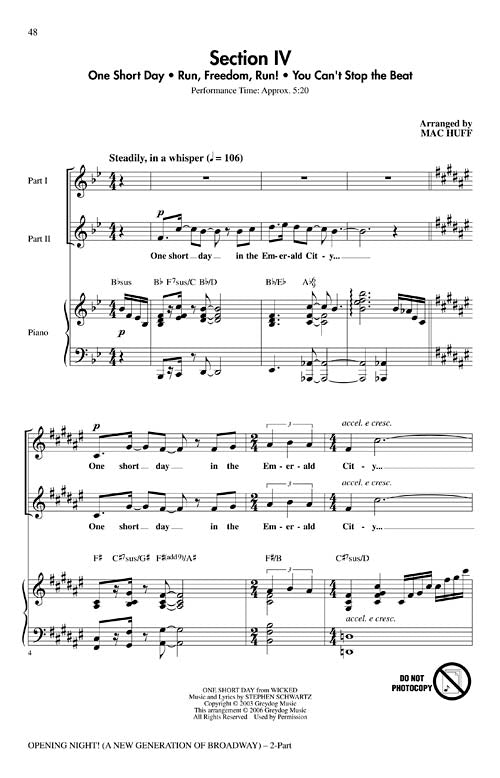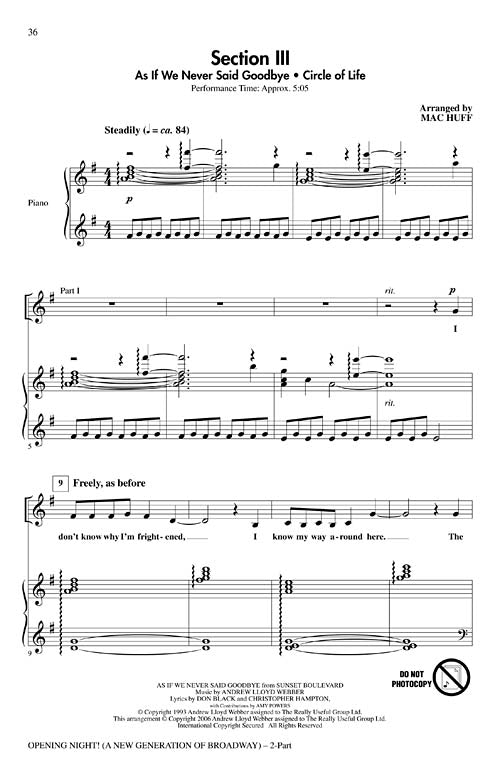 This Title Comes In Quantities Of Five (5) Copies(1 Order=5 Copies) Opening Night A New Generation of Broadway Composer: Mac Huff arr. Mac Huff Publisher: Category: Choral Series: Broadway Choral Format: Voicing: 2-Part The Lion King,...Regular price $59.99 -