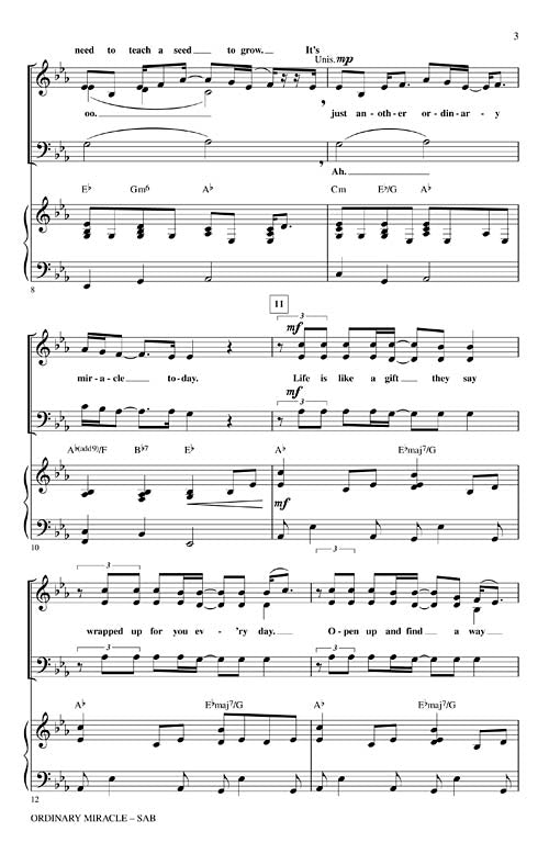 Ordinary Miracle Sab Pop Choral Series Sarah Mclachlan