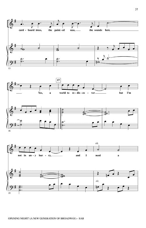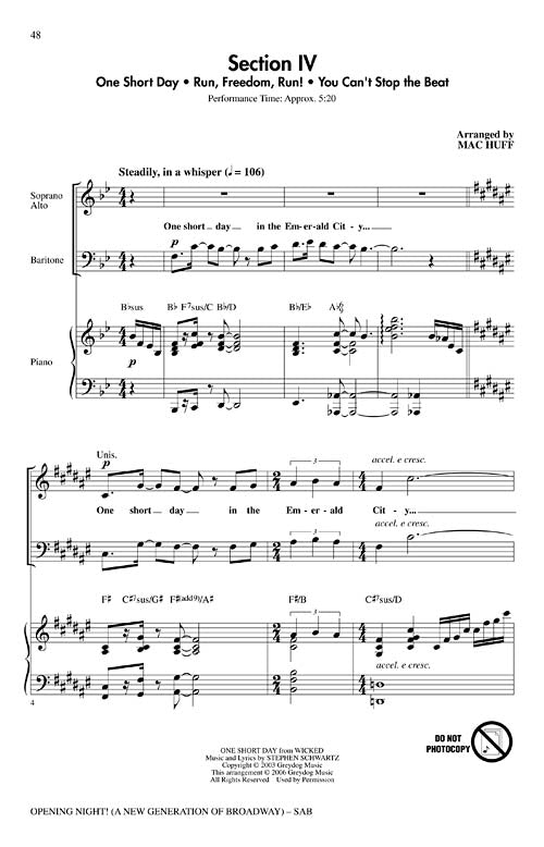 Arranger: Mac Huff Opening Night A New Generation of Broadway Publisher: Hal Leonard Category: Choral Series: Broadway Choral Format: Paperback The Lion King, Wicked, Spamalot, The Producers ... all have taken Broadway by storm. Celebrate the...Regular price $59.99 -