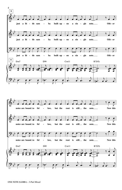 One Note Samba Discovery Choral 3 Part Mixed Antonio Carlos Jobim