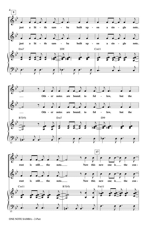 One Note Samba Discovery Choral 2 Part Antonio Carlos Jobim