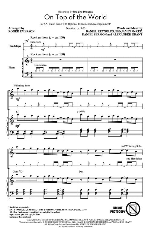 On Top Of The World Pop Choral Series Satb Imagine Dragons