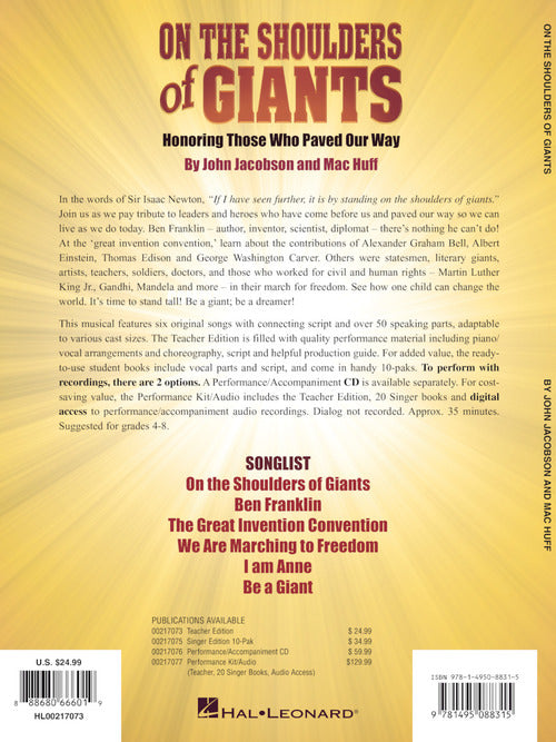 On the Shoulders of Giants Honoring Those Who Paved Our Way Softcover Audio Online Perf Kit with Audio Download Join us as we pay tribute to leaders and heroes who have come before us and paved...Regular price $155.99 -