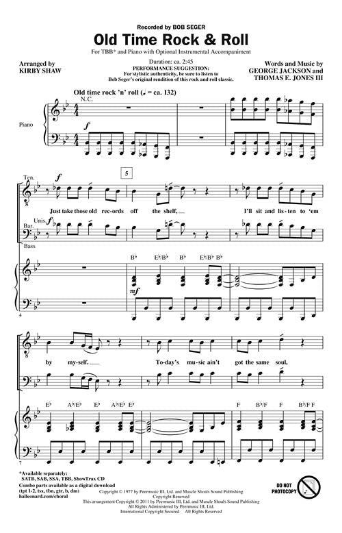 Old Time Rock Roll Tbb Pop Choral Series Bob Seger