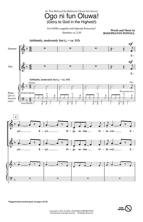 Ogo Ni Fun Oluwa Festival Choral Satb A Cappella Rosephanye Powe