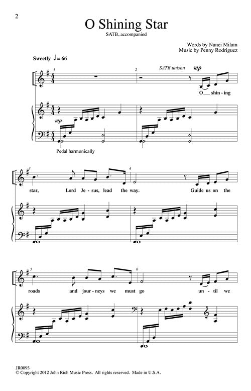O Shining Star Publisher: John Rich Music Press Category: Choral Series: Pavane Choral Format: Paperback Here is a wonderful Christmas piece with a tune that will capture your heart not once but twice. The end of...Regular price $25.99 -
