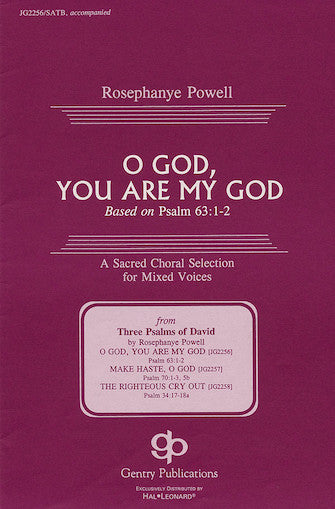 This Title Comes In Quantities Of Five (5) Copies(1 Order=5 Copies) O God, You Are My God Publisher: Fred Bock Music Company Category: Choral Series: Gentry Publications Format: Paperback Under the heading Three Psalms of David,...Regular price $19.99 -