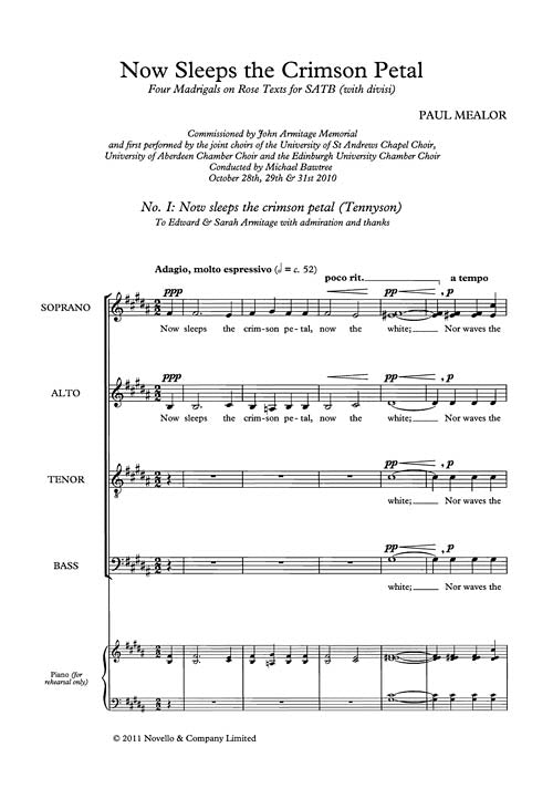Now Sleeps The Crimson Petal Satb Paul Mealor