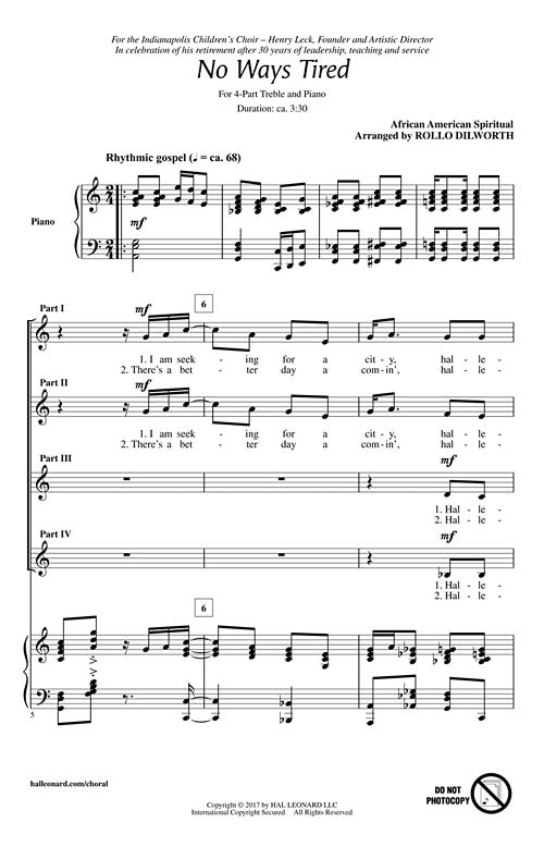 This Title Comes In Quantities Of Five (5) Copies(1 Order=5 Copies) No Ways Tired Octavo 4-Part Treble This spiritual encourages us to persevere even in times of challenge and adversity. Set in a gospel style with...Regular price $25.99 -