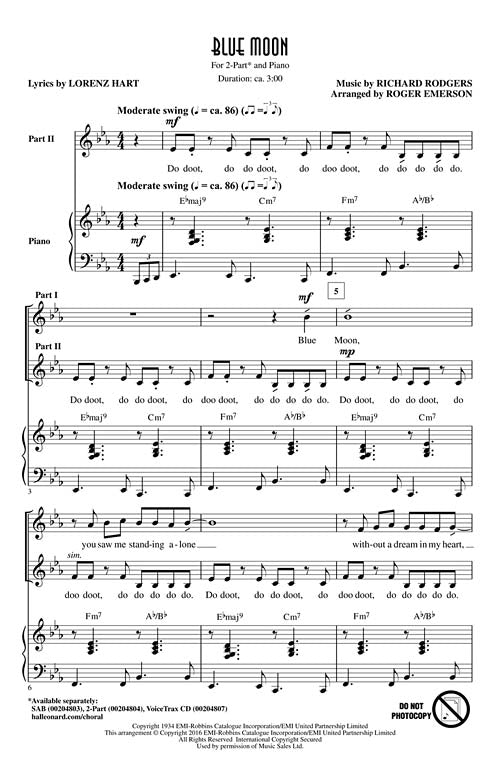 Blue Moon Discovery Choral 2 Part Richard Rodgers