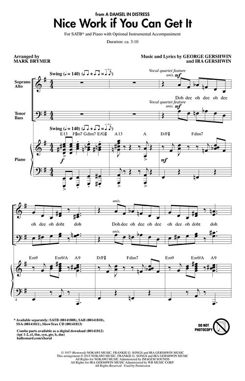 Nice Work If You Can Get It Pop Choral Series Satb George Gershwi
