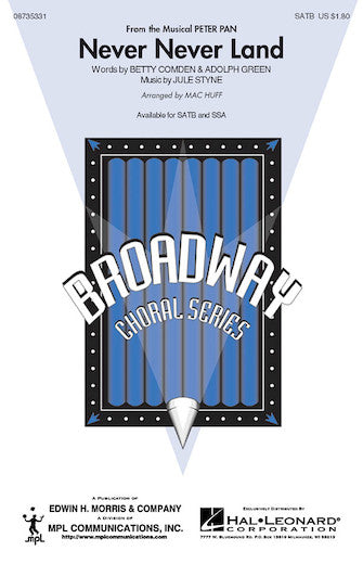 This Title Comes In Quantities Of Five (5) Copies(1 Order=5 Copies) Never Never Land Composer: Adolph Green (arr. Mac Huff) Publisher: Category: Choral Series: Choral Format: Voicing: SSA Available: SATB, SSA. Performance Time: Approx. 3:50. Inventory...Regular price $27.99 -