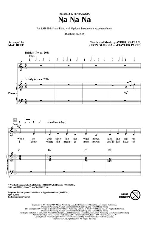 Na Na Na Pop Choral Series Satb Divisi Pentatonix