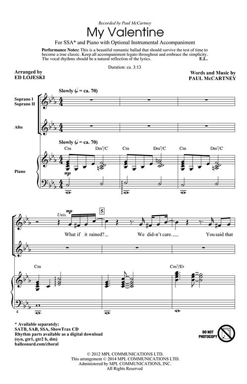 My Valentine Pop Choral Series Ssa Paul Mccartney