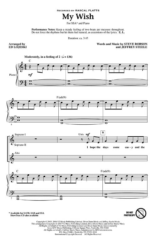 My Wish Ssa Pop Choral Series Rascal Flatts