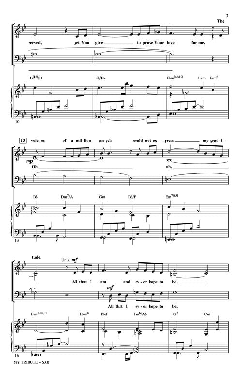 My Tribute Publisher: Daybreak Music Category: Choral Series: Daybreak Choral Series Format: Paperback To God be the glory for the great things He has done! These words are so eloquently expressed in the Andraé Crouch classic....Regular price $20.99 -