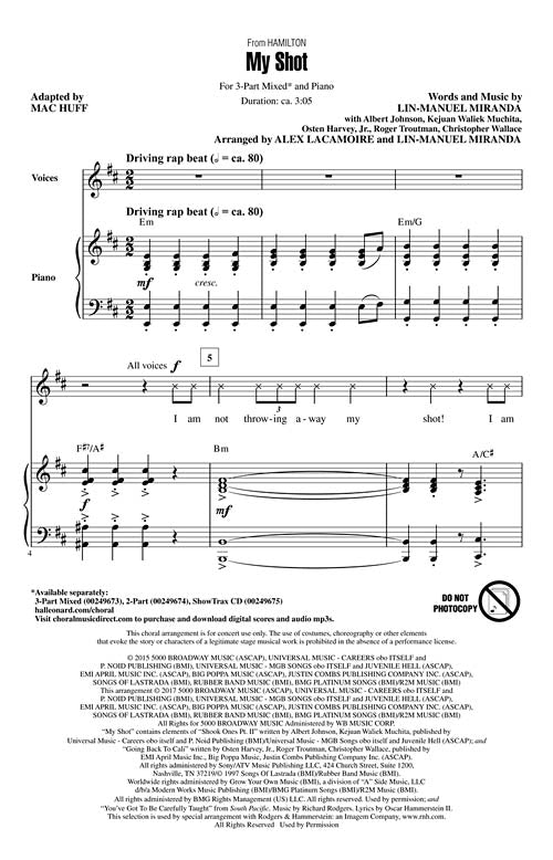 This Title Comes In Quantities Of Five (5) Copies(1 Order=5 Copies) My Shot (from Hamilton) Discovery Level 2 Composer: Lin-Manuel Miranda Lin-Manuel Miranda/adapt. Mac Huff Publisher: Hal Leonard Category: Choral Series: Discovery Choral Format: Octavo Voicing:...Regular price $27.99 -