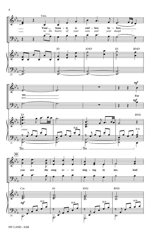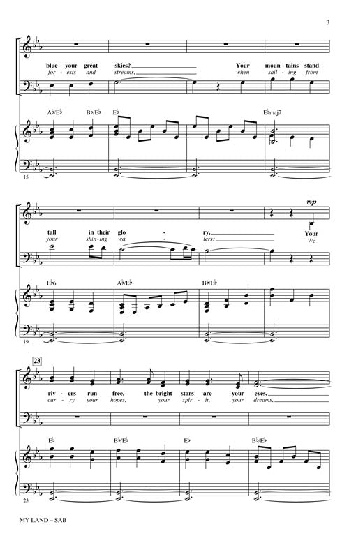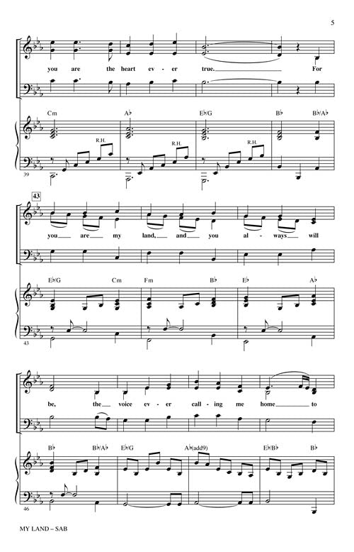 This Title Comes In Quantities Of Five (5) Copies(1 Order=5 Copies) My Land Composer: Alana Graham arr. Roger Emerson Publisher: Hal Leonard Category: Choral Series: Contemporary Choral Format: Voicing: SAB This stirring song from Celtic Woman's...Regular price $22.99 -
