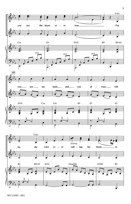 This Title Comes In Quantities Of Five (5) Copies(1 Order=5 Copies) My Land Arranger: Alana Graham arr. Roger Emerson Publisher: Hal Leonard Category: Choral Series: Contemporary Choral Format: Voicing: SSA This stirring song from Celtic Woman's...Regular price $32.99 -