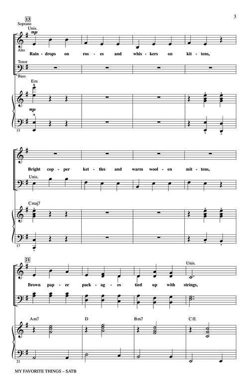 My Favorite Things Medley 3 Part Mixed Oscar Hammerstein Ii