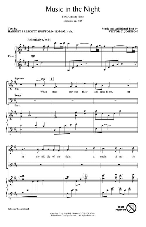 This Title Comes In Quantities Of Five (5) Copies(1 Order=5 Copies) Music in the Night SATB This emotional poetic setting will create an expressive moment in concert as fluid melodies and beautiful harmonies are further enhanced...Regular price $22.99 -