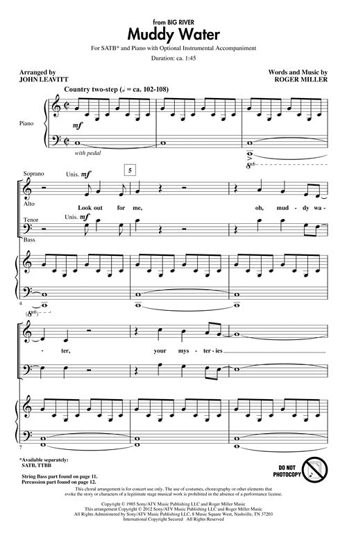 This Title Comes In Quantities Of Five (5) Copies(1 Order=5 Copies) Muddy Water from Big River Composer: Roger Miller arr. John Leavitt Publisher: Hal Leonard Category: Choral Series: Broadway Choral Format: Voicing: SATB Now available for...Regular price $27.99
