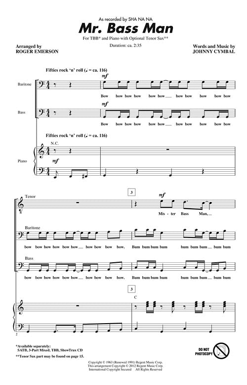 Mr Bass Man Tbb Pop Choral Series Johnny Cymbal