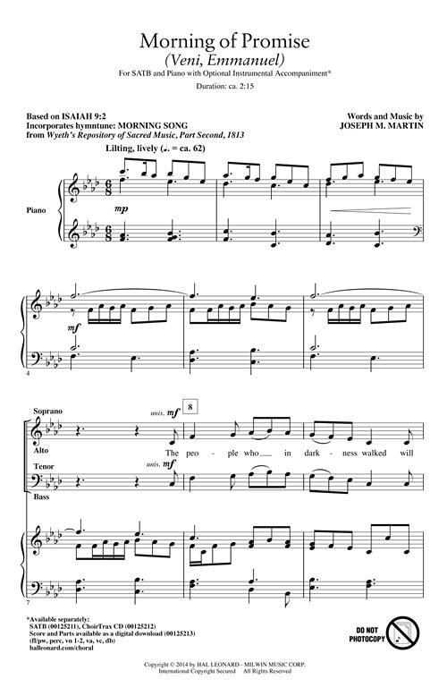This Title Comes In Quantities Of Five (5) Copies(1 Order=5 Copies) Morning of Promise (Veni, Emmanuel) Publisher: Brookfield Press Category: Choral Series: Brookfield Christmas Choral Format: Paperback Uses: Advent Scripture: Isaiah 9:2-7; Micah 5:2 Based on...Regular price $22.99 -
