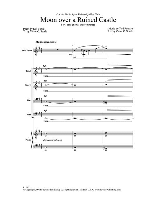 This Title Comes In Quantities Of Ten (10) Copies. 1 Order = 10 Individual Copies Moon Over A Ruined Castle TTBB a cappella Composer: Taki Rentaro Item# 08301761 Sheet MusicRegular price $21.99