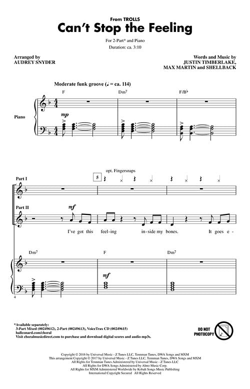 Cant Stop The Feeling Discovery Choral 2 Part Justin Timberlake