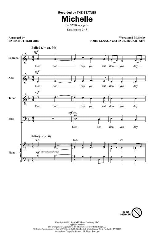 Michelle Pop Choral Series Satb A Cappella The Beatles