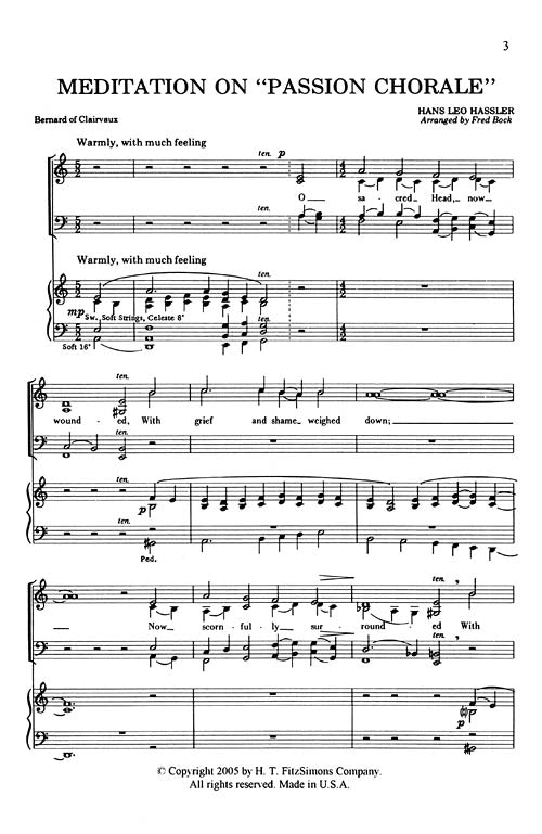 Meditation On Passion Chorale Satb Hans Leo Hassler