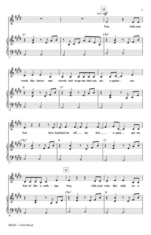 Mean 3 Part Mixed Pop Choral Series Taylor Swift