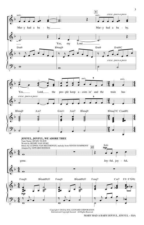 Mary Had A Baby Joyful Joyful Sacred Christmas Choral Ssa Arrang
