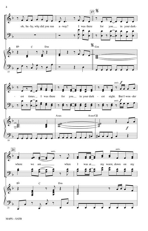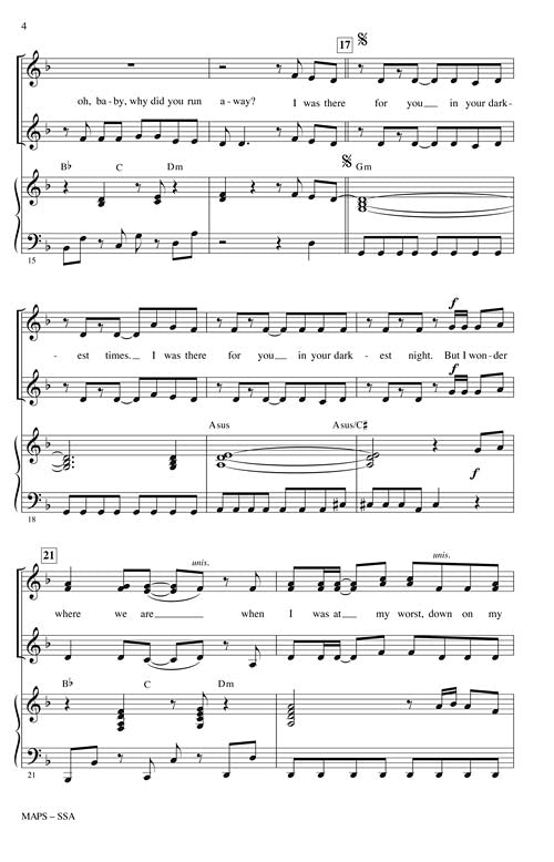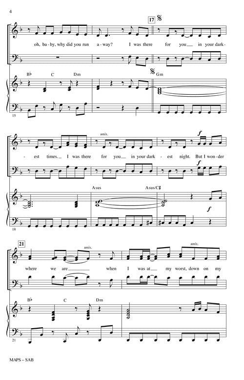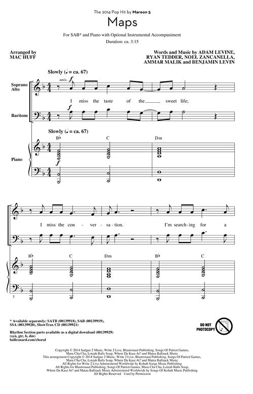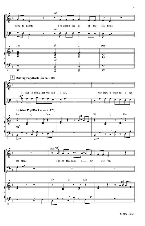 This Title Comes In Quantities Of Five (5) Copies(1 Order=5 Copies) Maps Publisher: Hal Leonard Category: Choral Series: Pop Choral Series Format: Paperback Inventory # : 00139918 UPC: 888680039882 ISBN: Width: 6.75" Length: 10.5" Height: 0.029"...Regular price $23.99 -